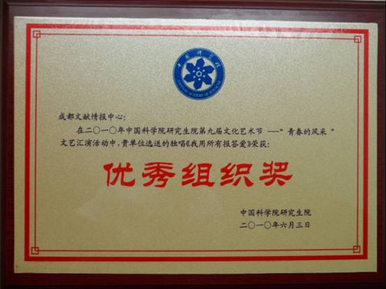 在馆领导及各位导师的大力支持下,国科图成都分馆研究生在紧张的科研生活中抓紧时间排练,积极参加了研究生院第九届文化艺术节并获得佳绩。