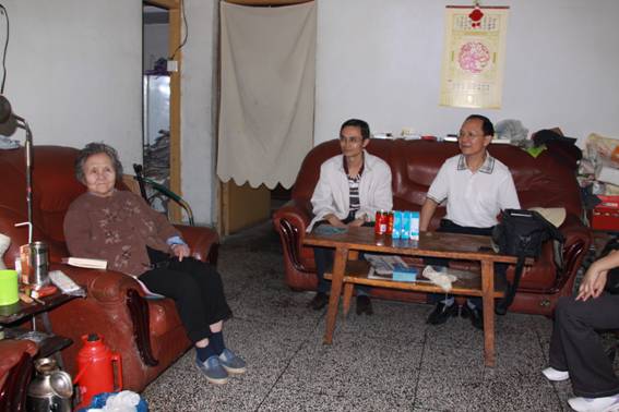 在建国60周年和中秋节到来之际,成都分馆方曙馆长、曾文华书记走访慰问了建国前参加革命工作的老干部,为他们送去组织的关怀和祝福。