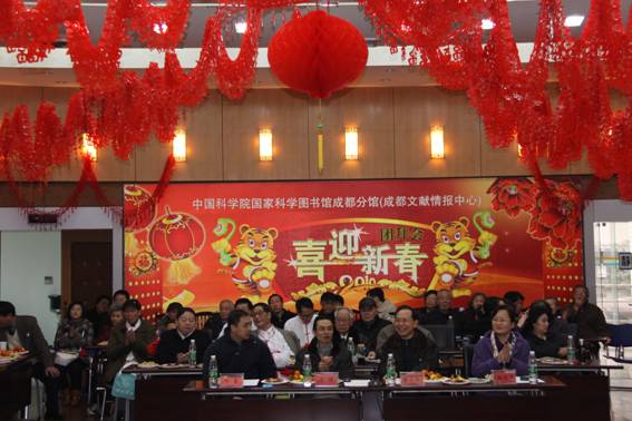 2010年2月9日上午,国科图成都分馆学术厅张灯结彩、喜气洋洋,一年一度的辞旧迎新团拜会在此举行。分馆党政领导班子成员、全体在岗职工及离退休老同志共同参加了这次活动。活动由曾文华书记主持。