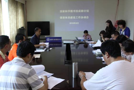 为应对保密工作的新形势,促进保密工作科学化、规范化、制度化,确保国家科学图书馆成都分馆保密体系建设工作顺利开展,8月5日下午,中科院国科图成都分馆组织召开了保密体系建设专题工作会议。成都分馆相关领导、部门负责人和各部门安全员参加了会议。会议由成都分馆副馆长邓勇主持。