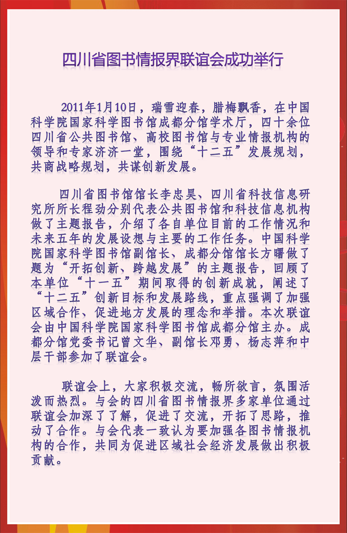四川省图书情报界联谊会成功举行