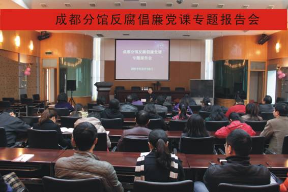通过这次讲座,成都分馆全体党员对当前我国反腐倡廉的基本形势有了基本的了解,对院纪监审工作会议精神及2011反腐倡廉的重点工作任务有了较深刻的认识和理解,为做好成都分馆的反腐倡廉工作、深入推进党风廉政建设打下了坚实的基础。