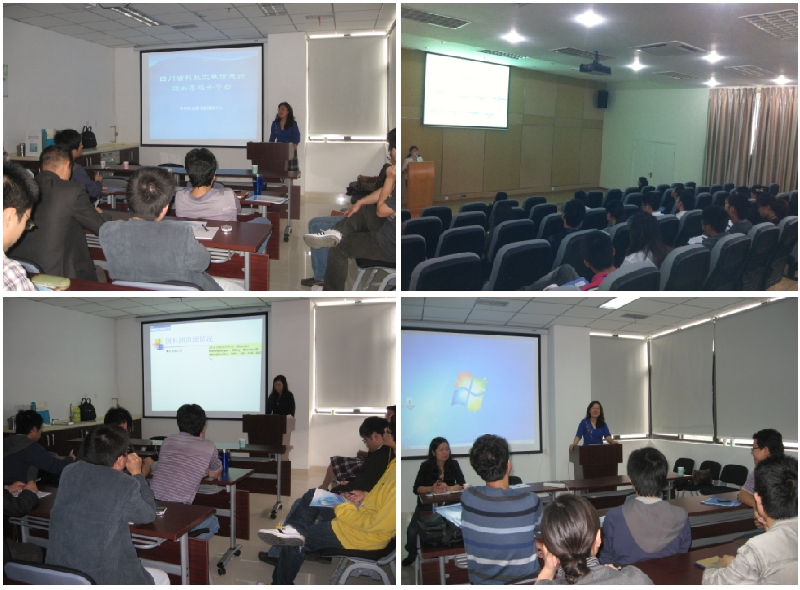 在宣传推广会上,信息服务部韩红、陈力、鄢小燕三位同志分别简要地介绍了 “国家科技图书文献信息中心(NSTL)”、“中科院国家科学图书馆”、 “四川省科技文献信息共享服务平台”,重点介绍了其资源和服务的类型、内容特征和获取方式,宣讲简明清晰,用户反应热烈,不仅对文献资源和服务,还对科技新闻聚合、情报服务、查新、专利分析、专利代理表示了较大的兴趣,踊跃提问,宣讲同志对能回答的问题进行了详细的回答,暂时不能回答的问题也留下了联系方式,回馆以后给予答复。