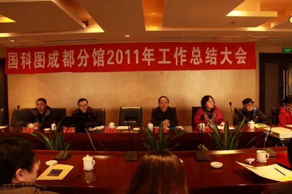 2012年1月13日下午,成都分馆召开了2011年度工作总结大会,馆长方曙、党委书记曾文华、副馆长邓勇、杨志萍和全体在职职工参加了会议。会议由曾文华主持。