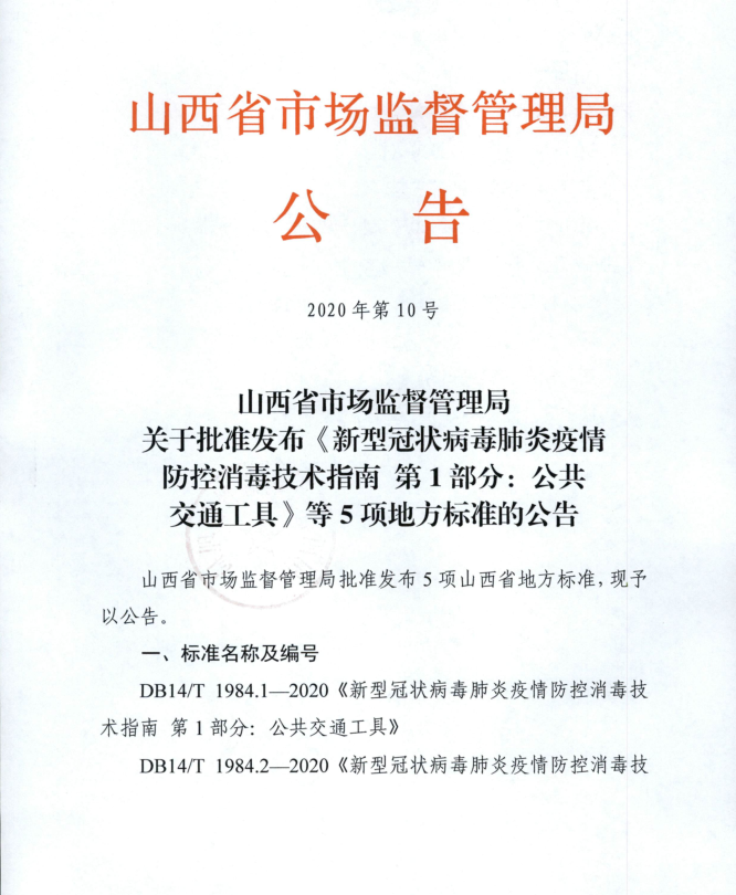 在标准制定过程中,山西省市场监管局认真贯彻习近平总书记关于疫情防控的重要指示精神,严格落实省委省政府和国家市场监管总局关于疫情防控工作决策部署,充分发挥职能作用,加强标准服务,及时开通标准助力疫情防控绿色通道,对相关省级地方标准制修订项目坚持随报随评随立,快速立项审查审核发布,进一步释放标准的创新力和契合力,彰显标准的基础性、引领性作用,确保疫情防控标准有效供给。